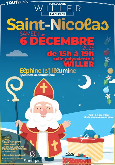 Le service enfance de CC Sundgau organise sa traditionnelle fête de la Saint Nicolas le 6 décembre prochain à la salle polyvalente de Willer.